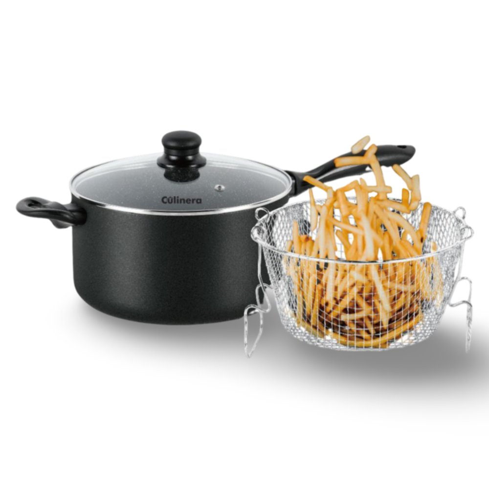 סיר ייעודי לטיגון צ'יפס עם ציפוי נון-סטיק איכותי, המבטיח טיגון אחיד ללא הדבקה. מתאים לשימוש יומיומי.
