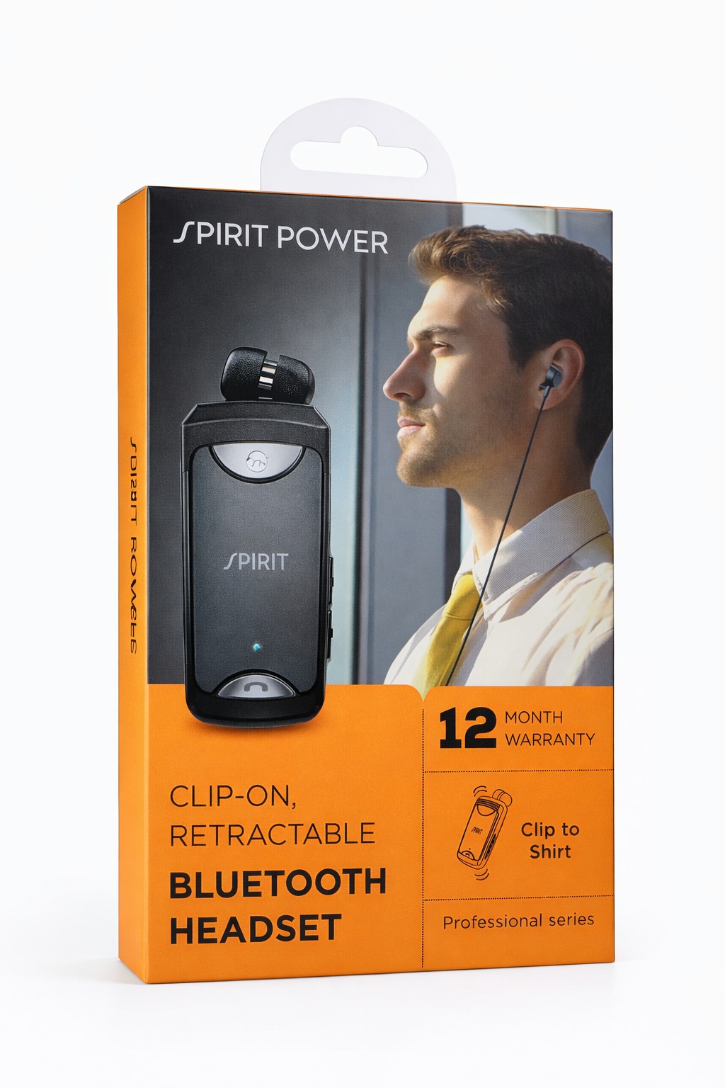 אוזניית BT חוט נגללת CLIP SPIRIT דגם CLIPON – אריזה כתומה