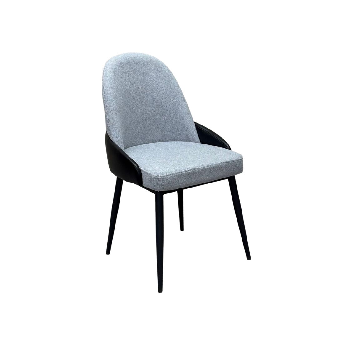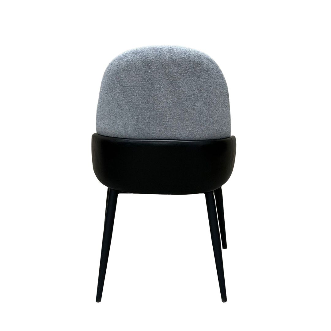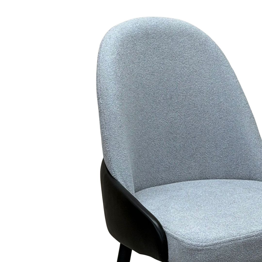 כיסא בלאנקה לפינת אוכל מבד בוקלה יוקרתי בשילוב דמוי עור – צבע אפור כחלחל