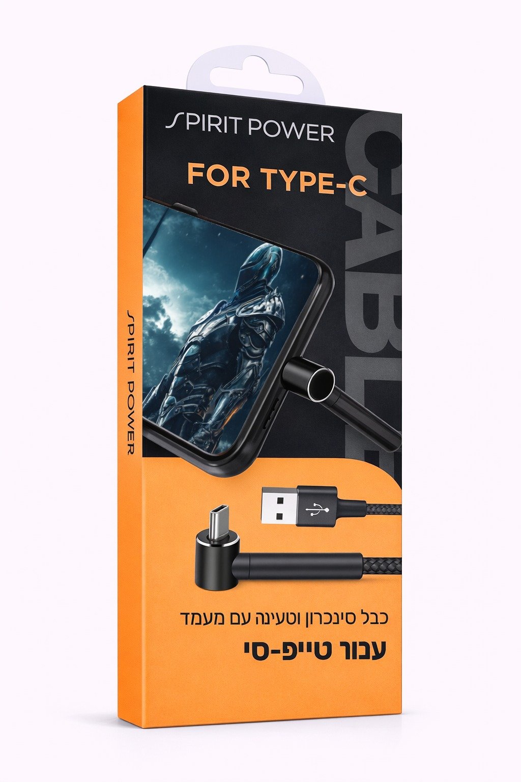 כבל 90 מעלות טייפ סי (אריזה כתומה)