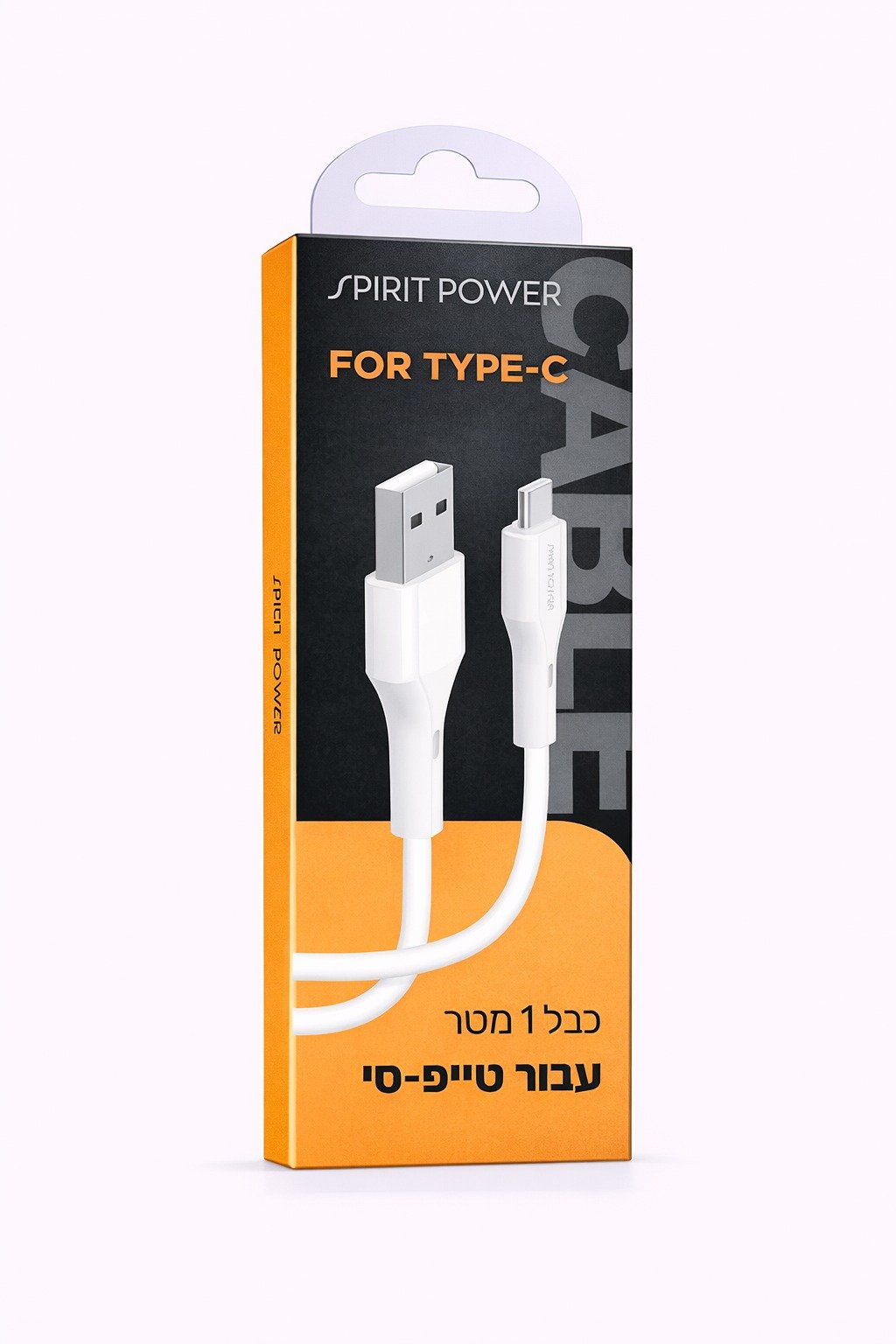 כבל USB לטייפ סי 1 מטר מחוזק (אריזה כתומה)