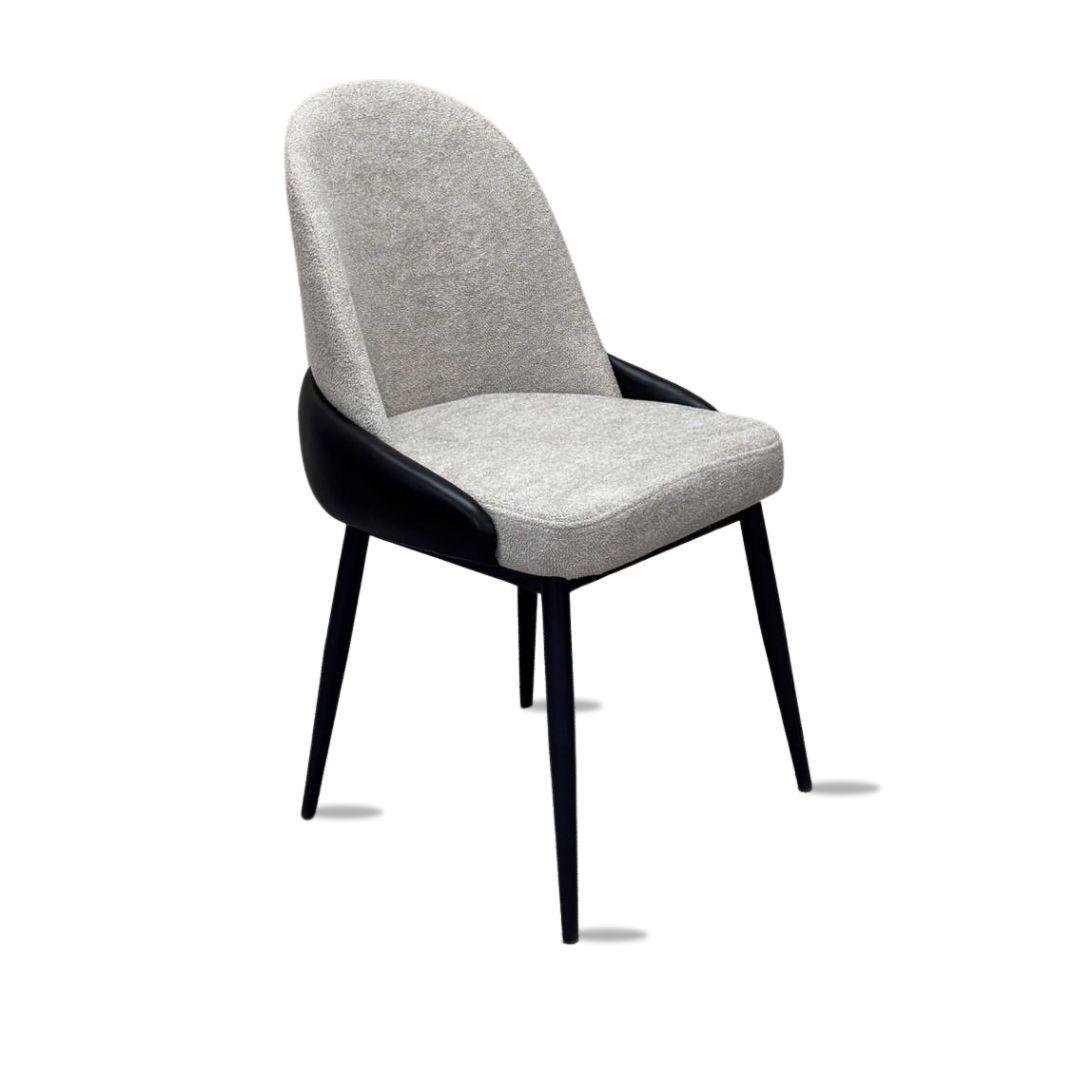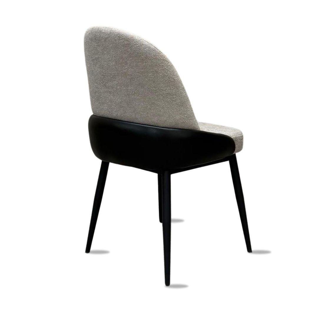 • כיסא אוכל אלגנטי ומעוצב, מרופד בבד בוקלה רך ונעים בשילוב דמוי עור איכותי.