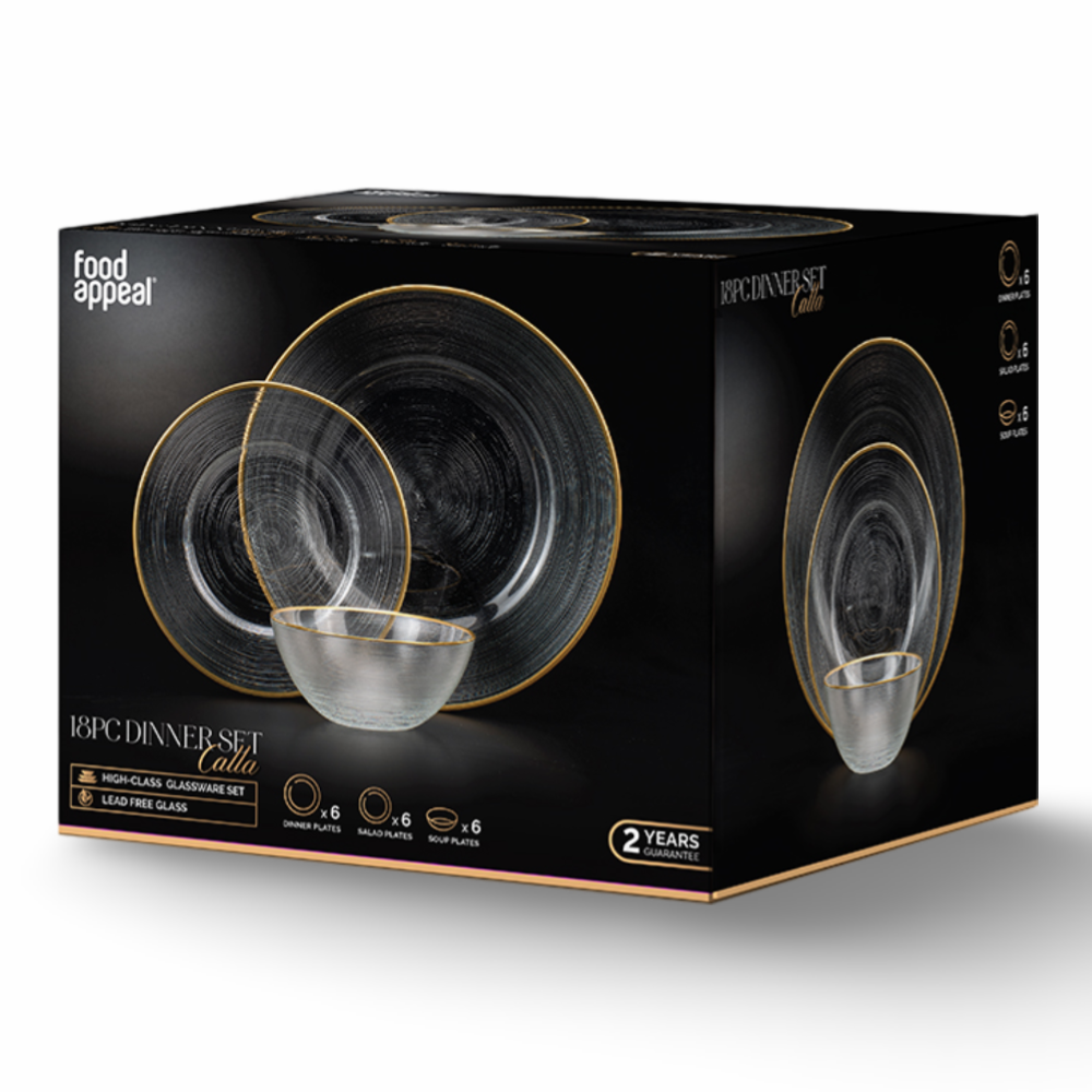 סט אוכל 18 חלקים זכוכית שקוף+שוליים זהב מבית Food appeal