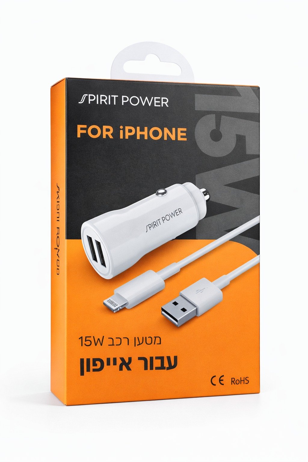 מטען רכב A3.1 כפול W15.5 עם כבל אייפון באריזה גדולה מהודרת