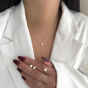 עגיל צמוד עשוי מכסף בציפוי זהב 14K 2 מיקרון משובץ באבני זרקון העגילים מגיעים כזוג.