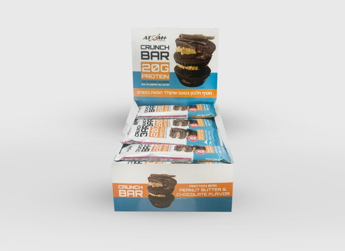 חטיפי חלבון טעימים באריזת חיסכון, מתאימים לנשנוש בריא לפני או אחרי אימון.